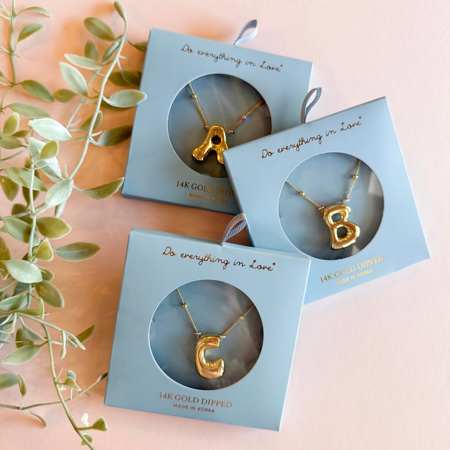 Discover elegant personalized gold bubble letter necklaces with a delicate beaded chain. Perfect for layering, gifting, or showcasing your unique style.